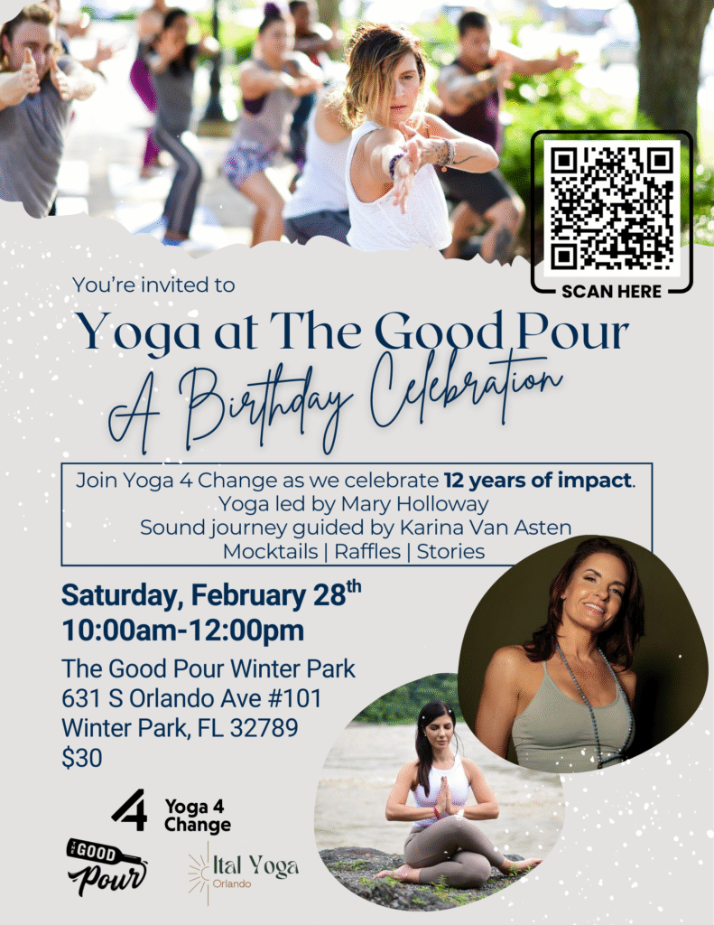 Join Yoga 4 Change as we celebrate 12 years of impact with a special community gathering designed to nourish your body and connect you to the heart of our mission.